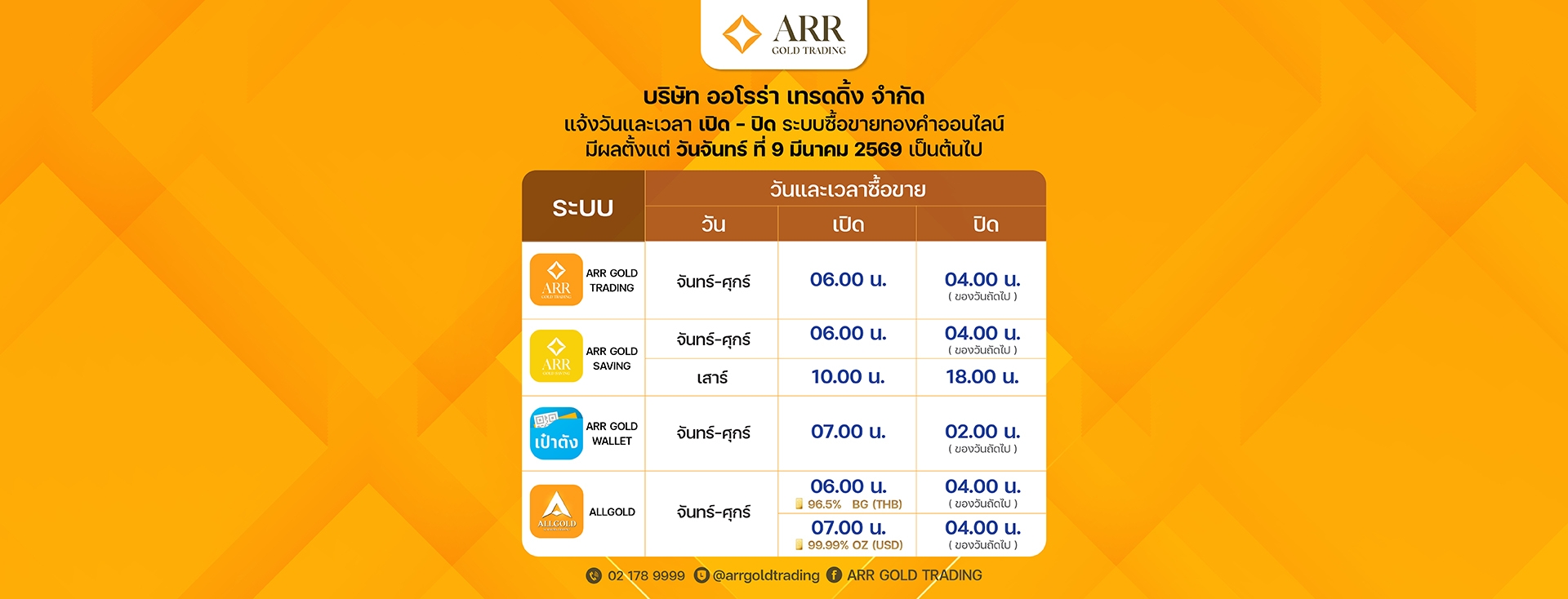 ซื้อขายทองคำแท่ง 96.50% และ 99.99% เริ่มต้น น้ำหนัก 5 บาทขึ้นไป เพิ่มเติม...คลิก