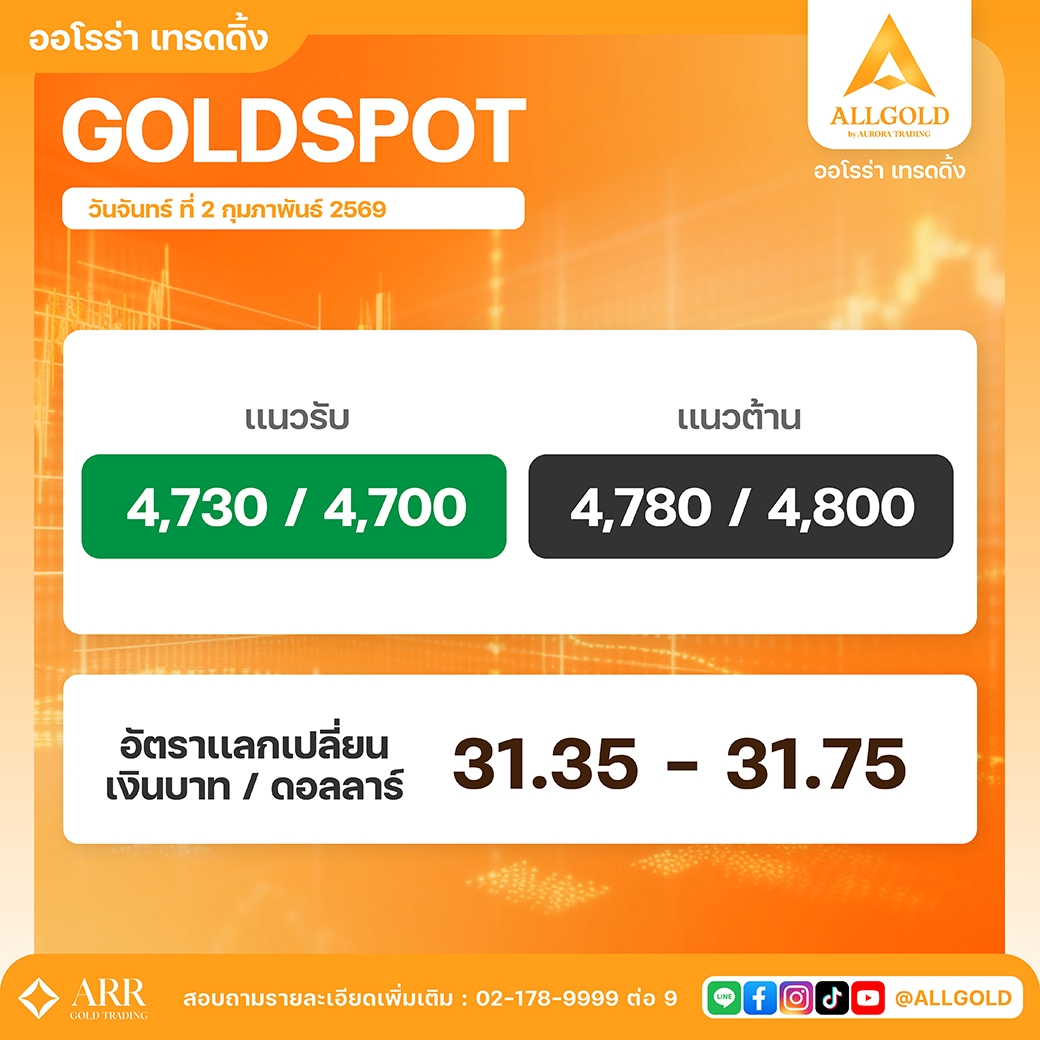 แนวรับ - แนวต้าน ประจำวันที่ 02 กุมภาพันธ์ 2569
