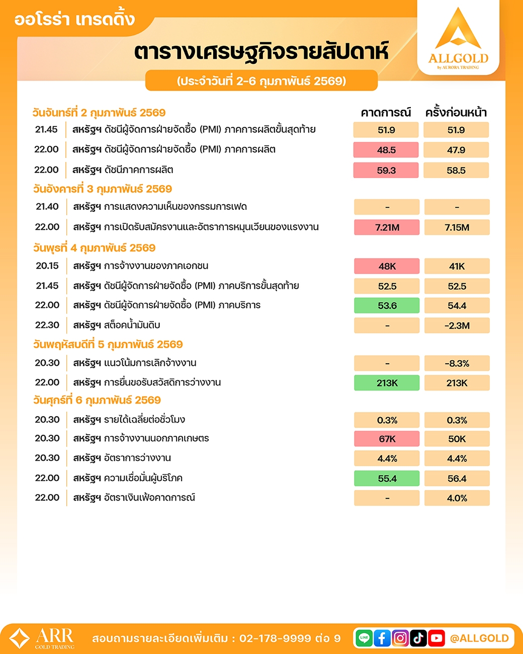 ตารางเศรษฐกิจรายสัปดาห์ ประจำวันที่ 09 กุมภาพันธ์ - 13 กุมภาพันธ์ 2569