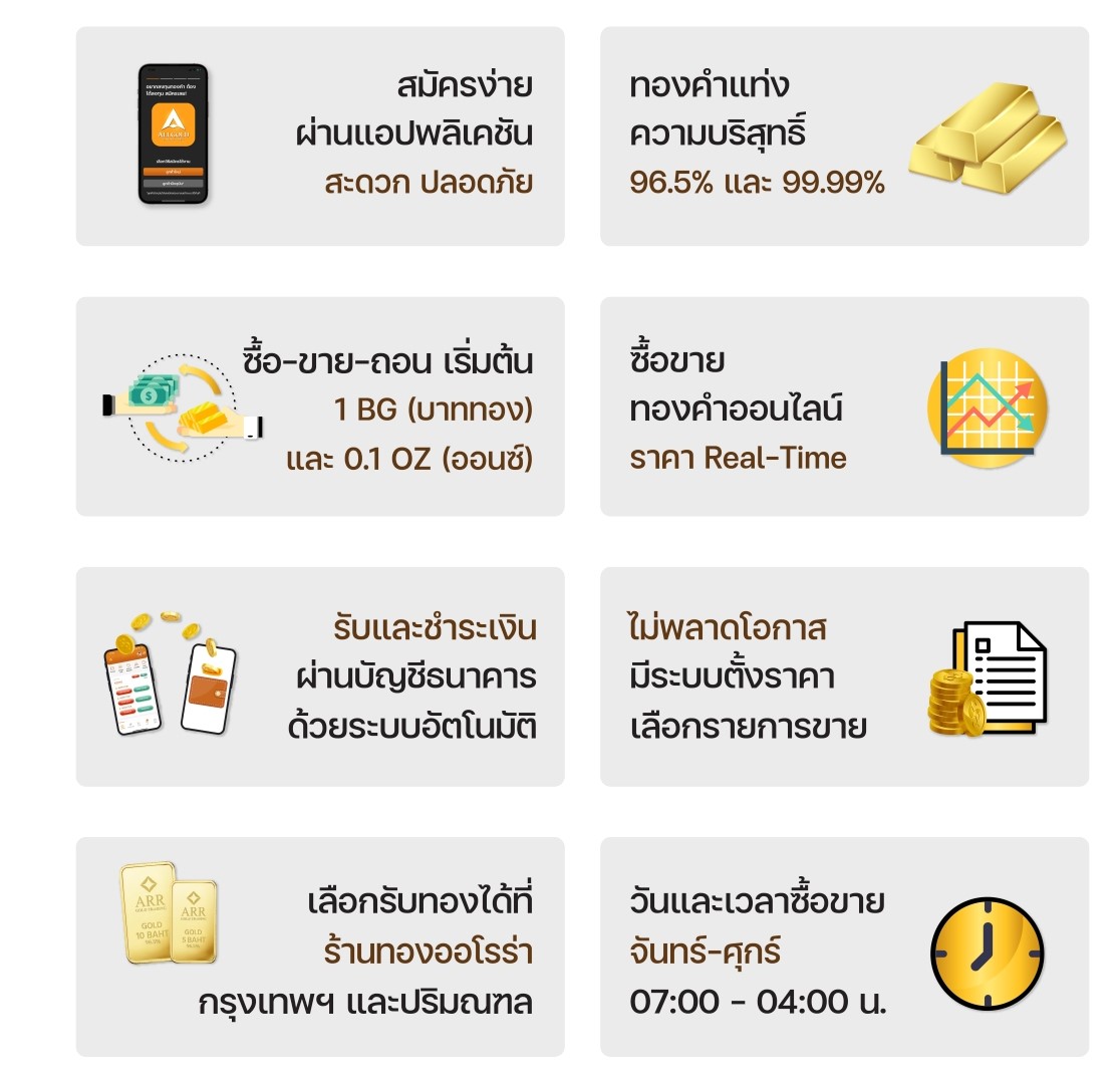- การทำรายการ ซื้อ-ขายทองคำ จะมีค่าธรรมเนียมการทำธุรกรรมผ่านบัญชีธนาคาร 5 บาทต่อรายการ