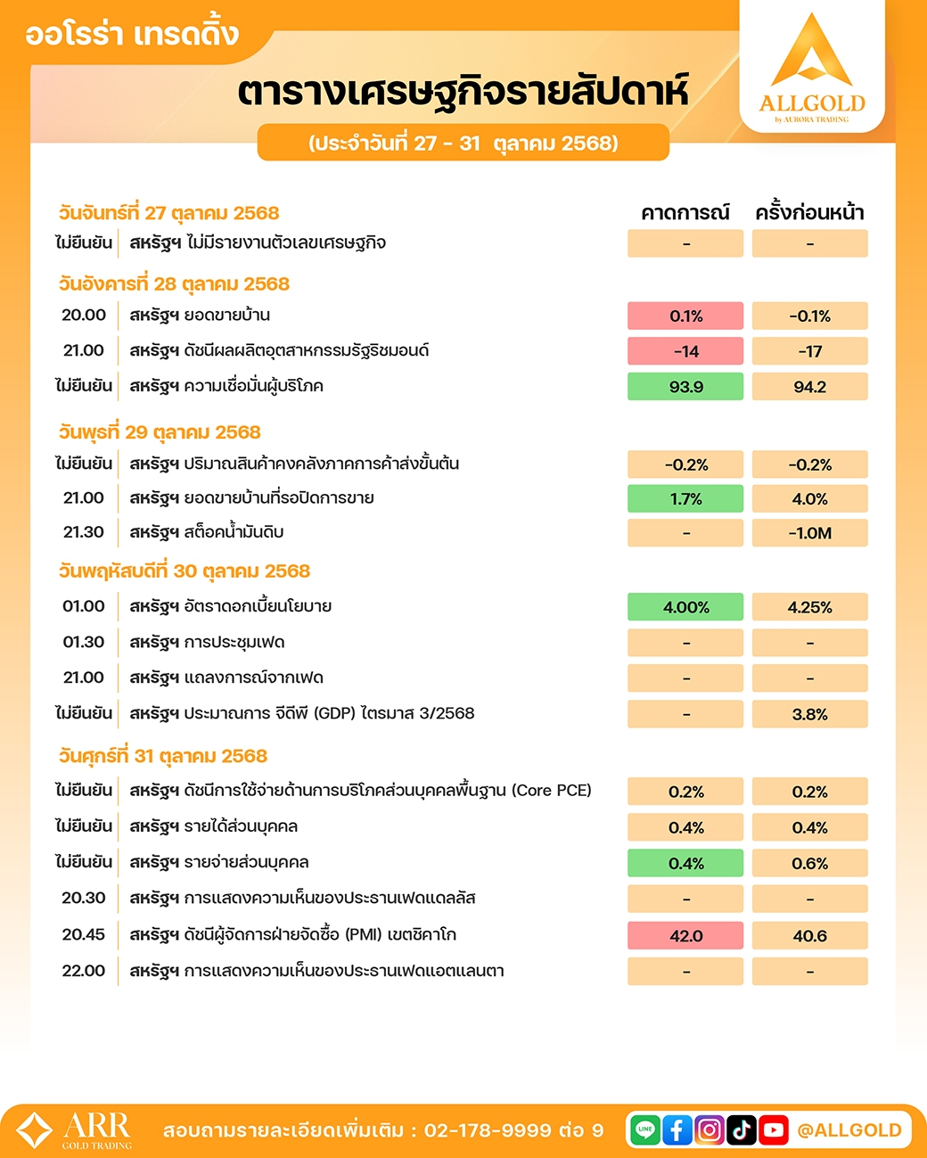ตารางเศรษฐกิจรายสัปดาห์ ประจำวันที่ 27 ตุลาคม - 31 ตุลาคม 2568