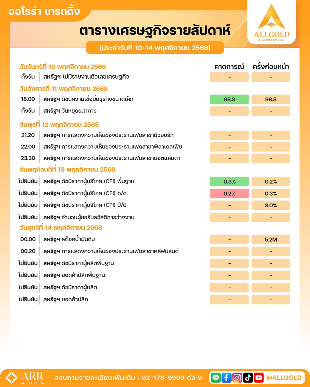 ตารางเศรษฐกิจรายสัปดาห์ ประจำวันที่ 10 - 14 พฤศจิกายน 2568