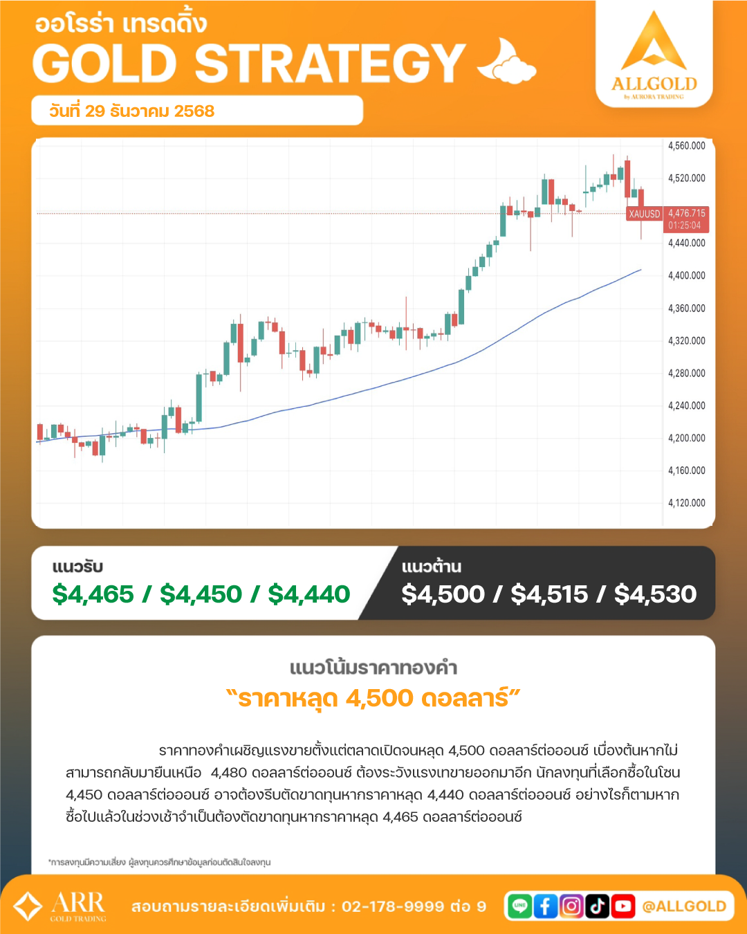 Technical Analysis 29-12-2568 “ราคาหลุด 4,500 ดอลลาร”
