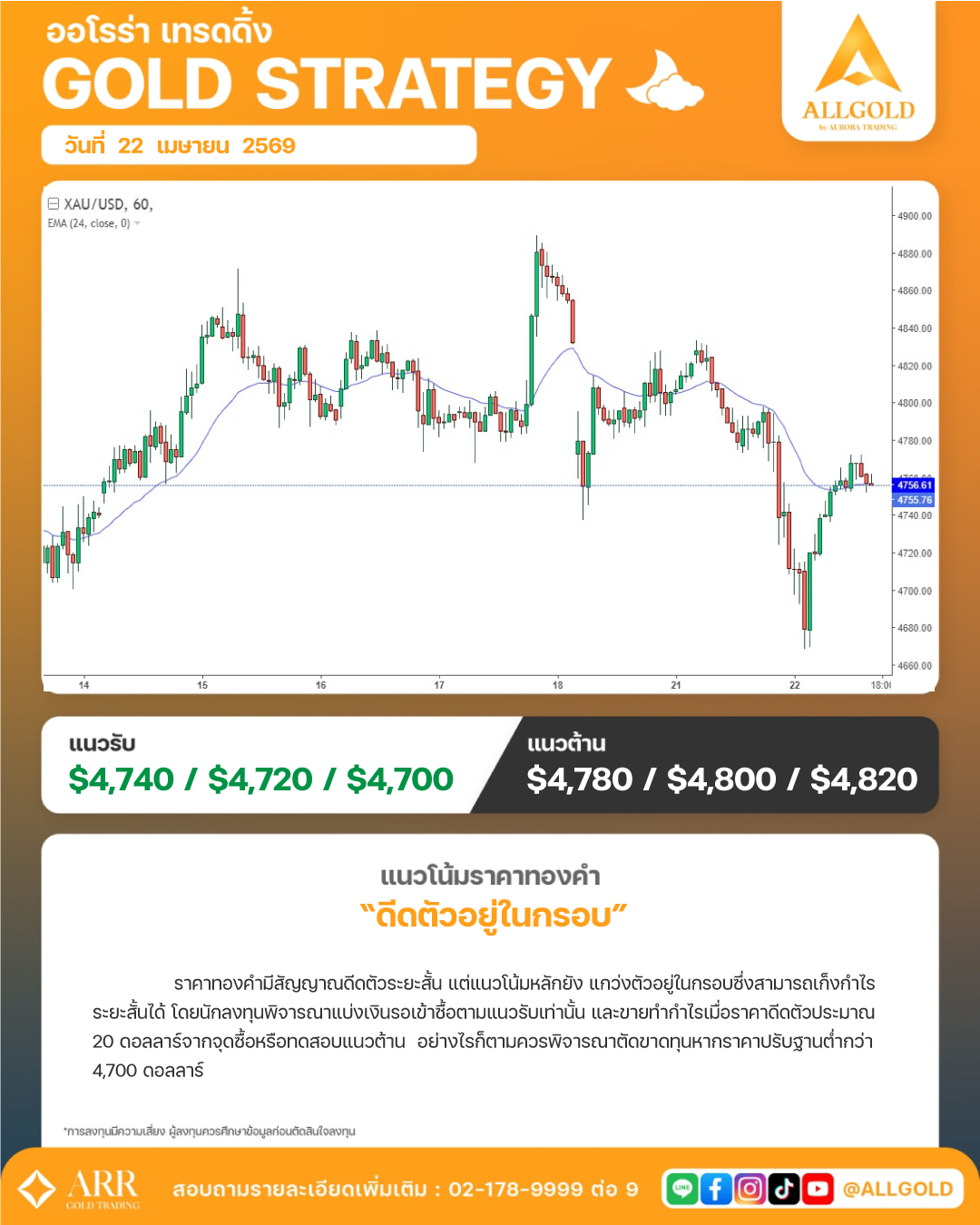 Technical Analysis 22-04-2026 “ดีดตัวอยู่ในกรอบ”